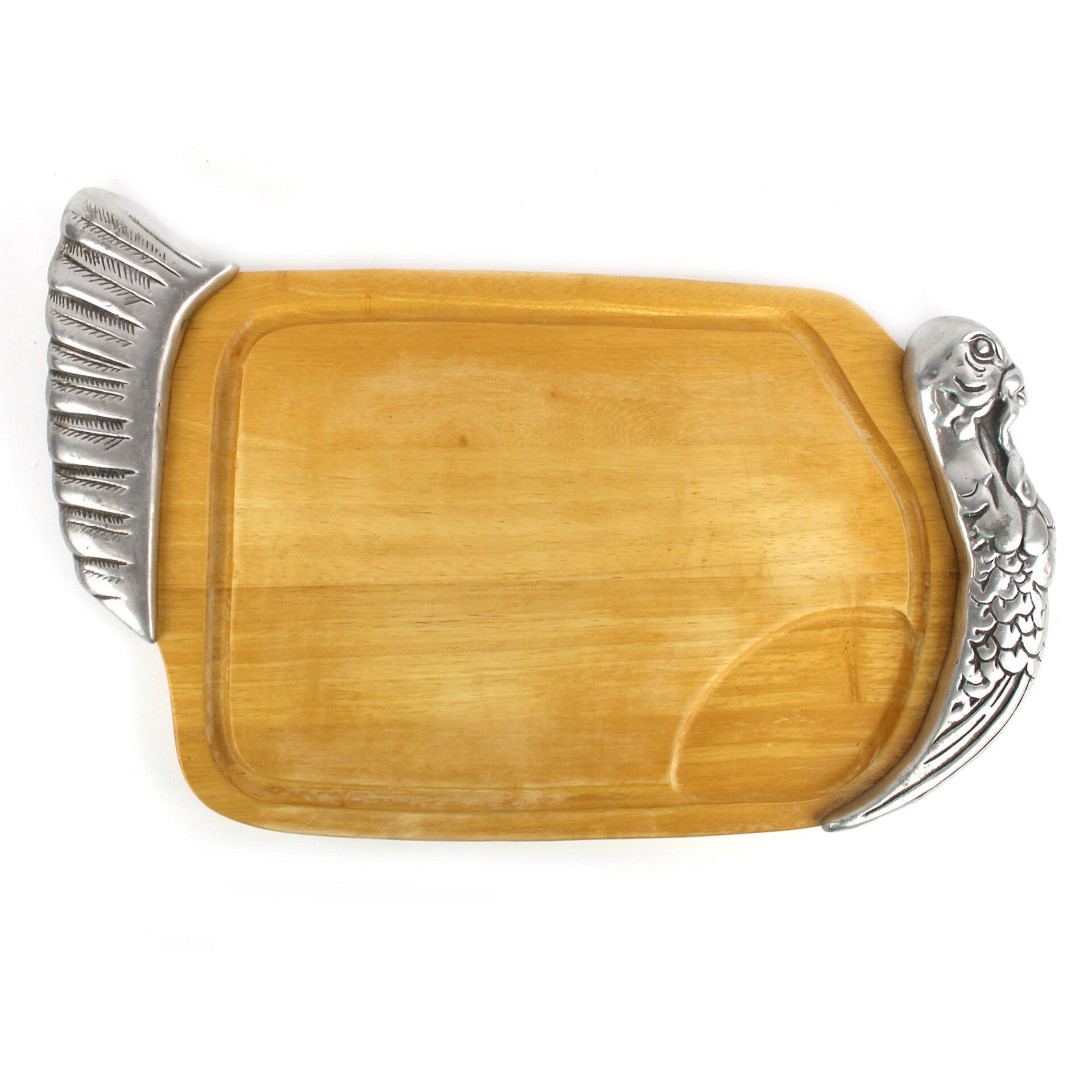 Maak indruk aan tafel met deze unieke, grote houten serveerplank van het merk Winsome. De plank is speciaal ontworpen voor het presenteren van kalkoen of kip en is voorzien van praktische gleuven om vleessappen op te vangen. Wat deze plank echt bijzonder maakt, is de decoratieve kop en staart van robuust aluminium in de vorm van een kalkoen – een echte eyecatcher!