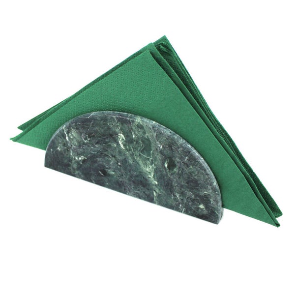 Stijlvolle vintage set van groen marmer, bestaande uit een peper- en zoutstel en bijpassende servethouder. De diepe, gemarmerde groentinten geven deze set een luxueuze en tijdloze uitstraling die perfect past bij zowel een klassieke als moderne tafelsetting.