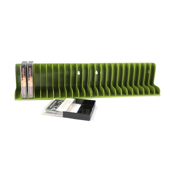 Elke houder biedt ruimte voor 12 cassettebandjes en kan zowel vrijstaand worden gebruikt als aan de muur worden bevestigd dankzij de handige ophanggaten aan de achterzijde.