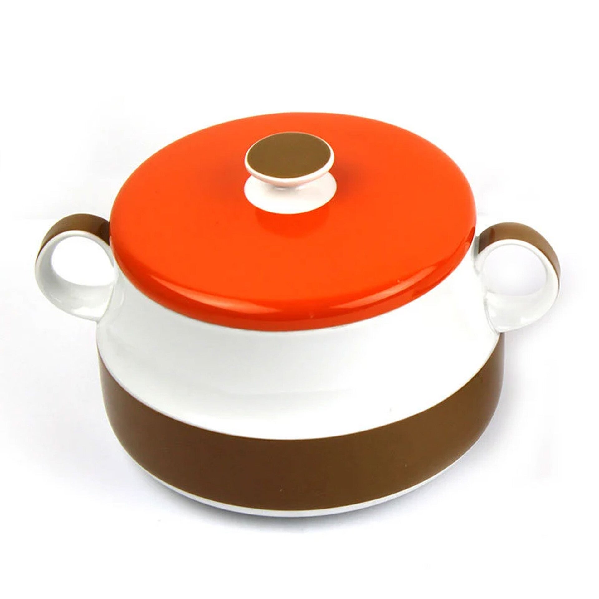 Aan de onderzijde gemerkt met het logo en de naam van de maker: Schönwald. De dekschalen dragen bovendien nog de originele sticker van de ontwerper en verkoper. Een echte eyecatcher voor in een retro keuken of voor liefhebbers van vintage Duits design.