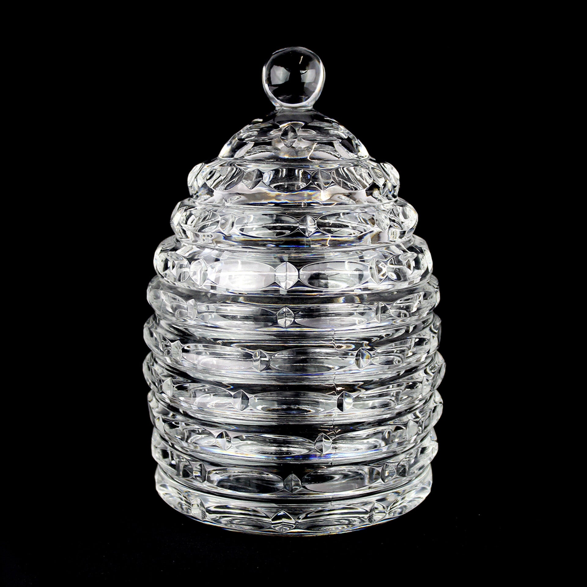 Pot van kristal bijenkorf vorm bonbonnière met deksel en bolknop