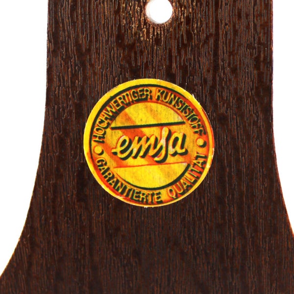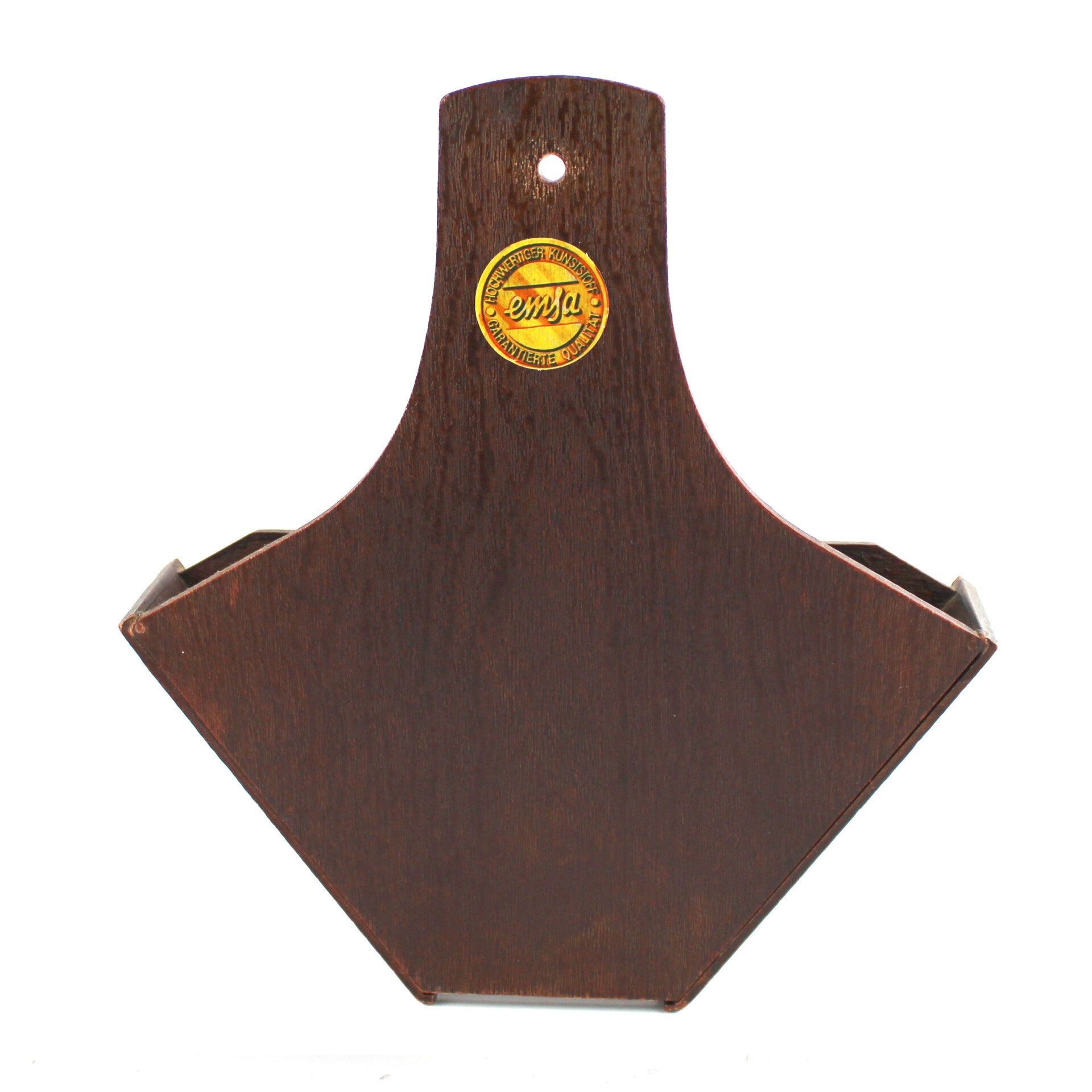 Voeg een vleugje seventies charme toe aan je keuken met deze vintage koffiefilterhouder van het Duitse merk Emsa. De houder is uitgevoerd in bruin plastic met houtlook, en versierd met een beige baan met bruine bloemetjes op de voorzijde.
