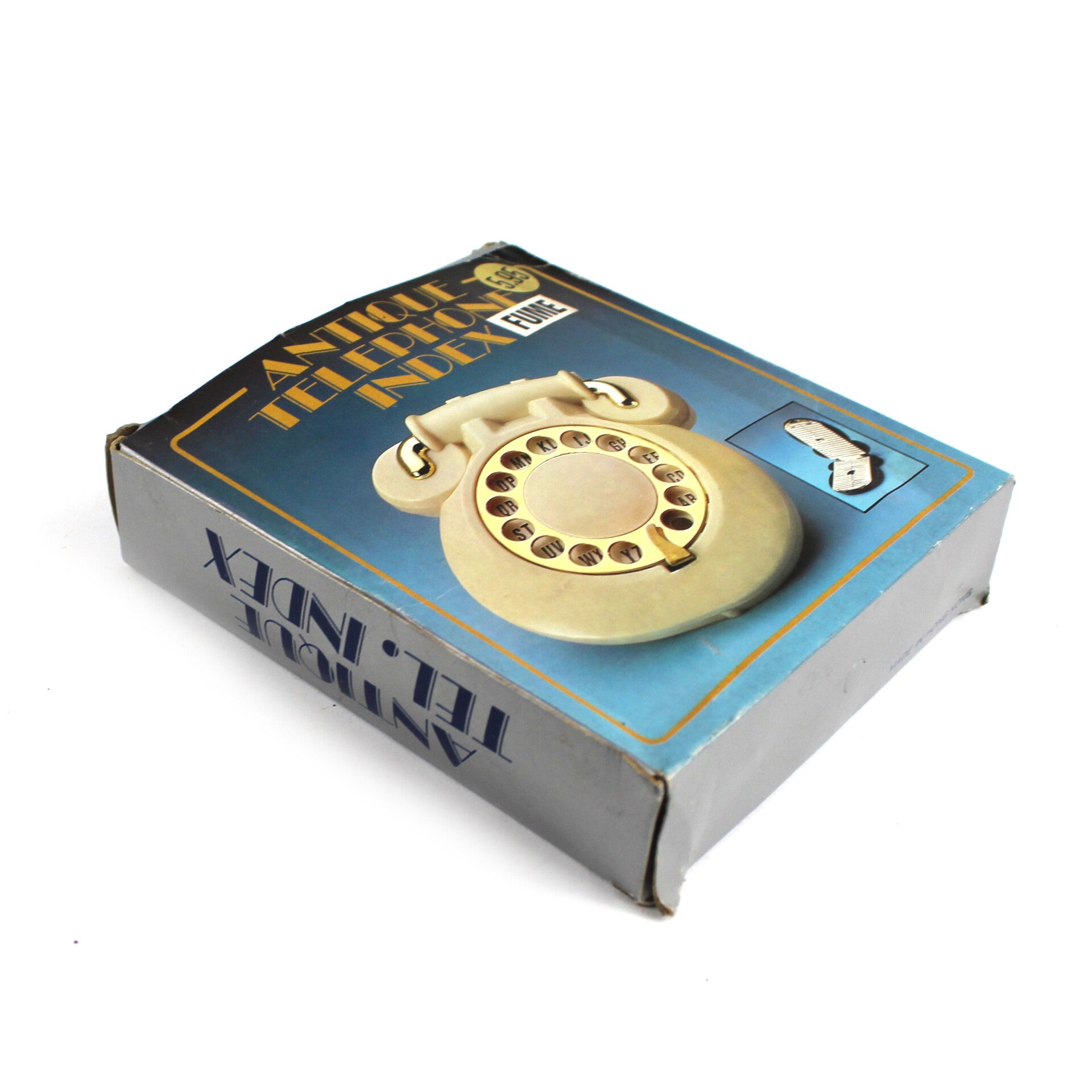 De index is ongebruikt en onbeschreven, en het geheel zit nog in de originele verpakking, een bijzonder verzamelobject en een echte eyecatcher voor liefhebbers van retro kantooraccessoires of telefoongerelateerde memorabilia.