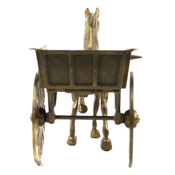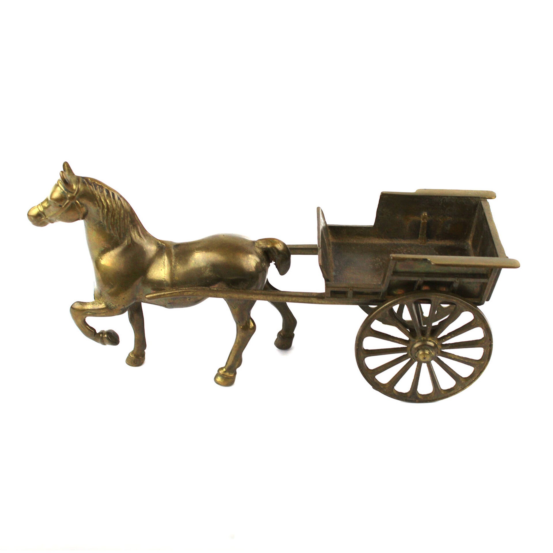 Charmant vintage decoratie object van een sierlijk paard met kar, gemaakt in de jaren 60/70 van messing. Dit gedetailleerde stuk is een mooi voorbeeld van klassiek vakmanschap en heeft een warme messing glans die direct sfeer en karakter toevoegt aan het interieur.