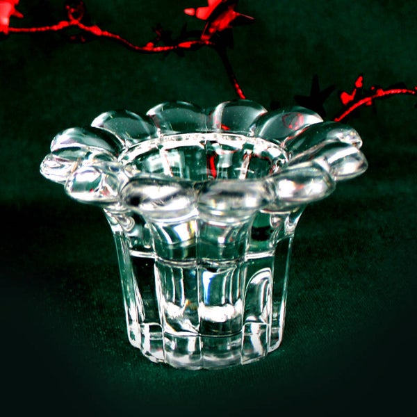 Breng subtiele elegantie in huis met deze vintage glazen kandelaars met bloemvormige rand. Het heldere glas vangt het licht prachtig en zorgt voor een sfeervolle schittering op tafel of in de vensterbank.